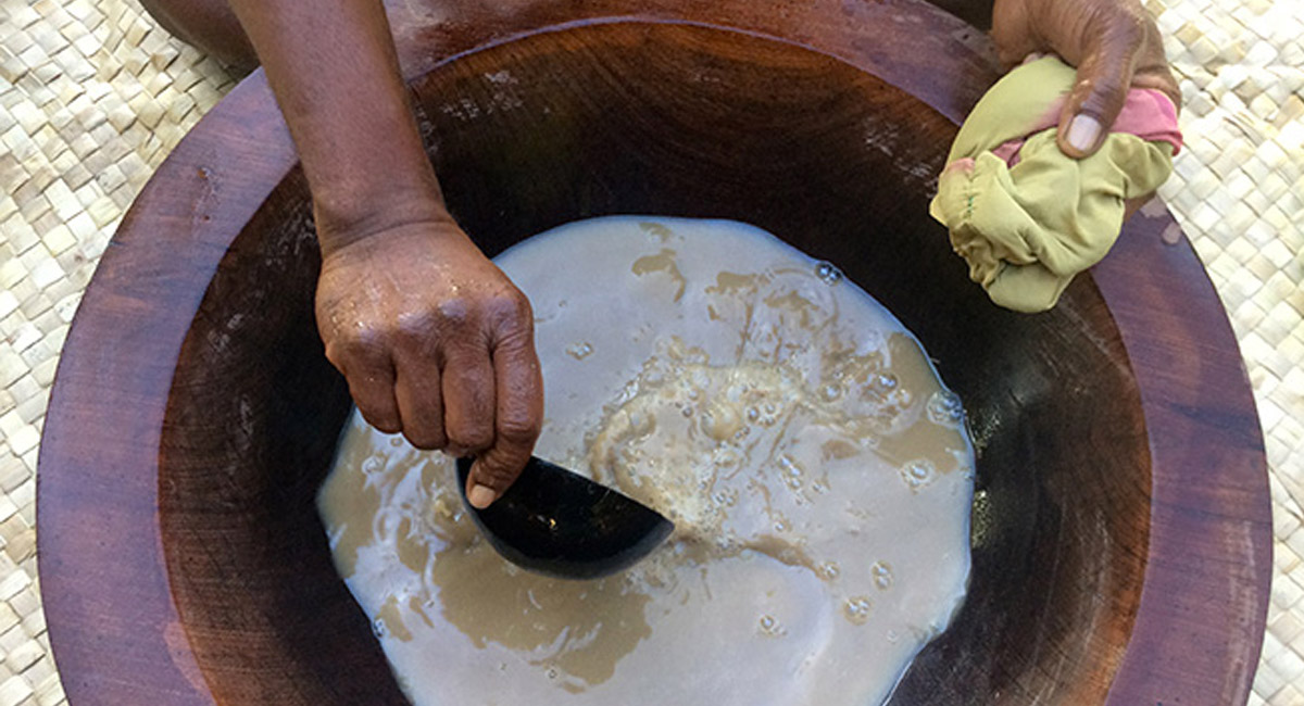 Traditional Kava, the national drink of Fiji. Kava is a mildly narcotic drink made from mixing the powdered root of the pepper plant with water.