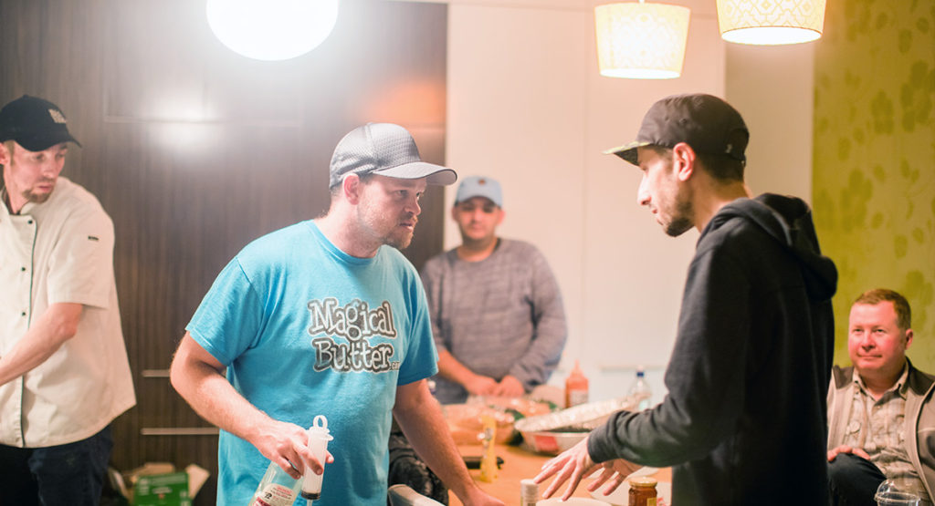 Some of the group including Chef Nathan [L], Dope Media director Sam Caldwell, Magical Butter Au director Nathan White, DJ Izm and Weedmaps director of media operations Lance Lambert