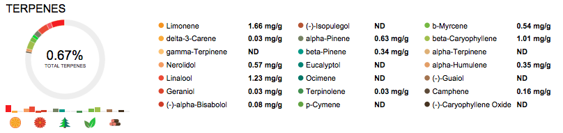 Cracking open a bud exuded a more pleasant floral citrus scent with an earthiness, kombucha-esque aroma that lingers in your nostrils. Lab tests showed that 0.67% of terpenes remained intact with limonene leading the way at 1.66mg per gram. These buds were also high in linalool and myrcene. The presence of myrcene means that even though these buds are old, they still have the power to break through the blood-brain barrier and produce an excellent high.
